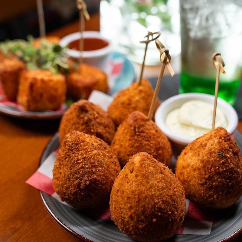 Brazil’s favorite croquette: creamy chicken filling, crunchy shell, served with house mayo.