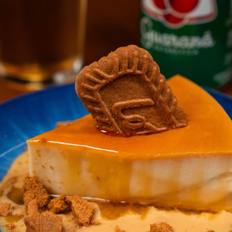 Caramel flan topped with dulce de leche and cinnamon crumble.